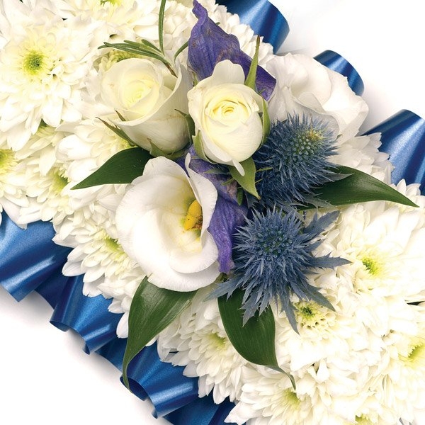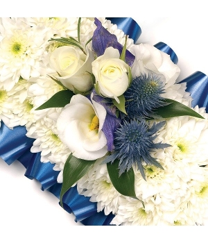 Classic Based Cross with Ribbon Edge and Blue & White Spray