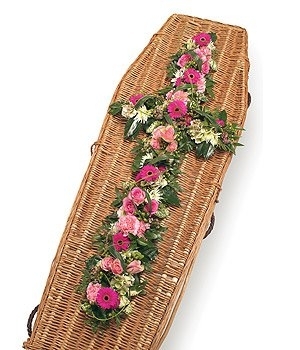 Loose Cross of Pink & White Flowers with natural foliage edge